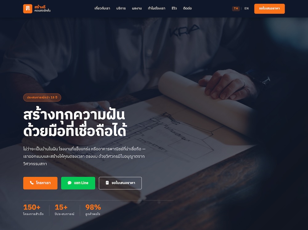 การออกแบบเว็บไซต์สำหรับบริษัทรับเหมาก่อสร้างในประเทศไทย ควรโฟกัสทั้งเรื่องการตลาด การสร้างความน่าเชื่อถือ (Trust) และการปิดการขายจริง