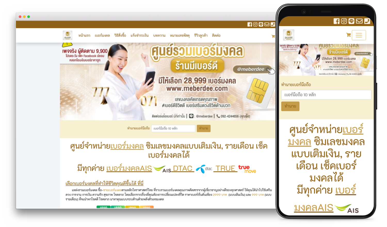 ออกแบบเว็บไซต์ขายเบอร์มงคล Meberdee.com