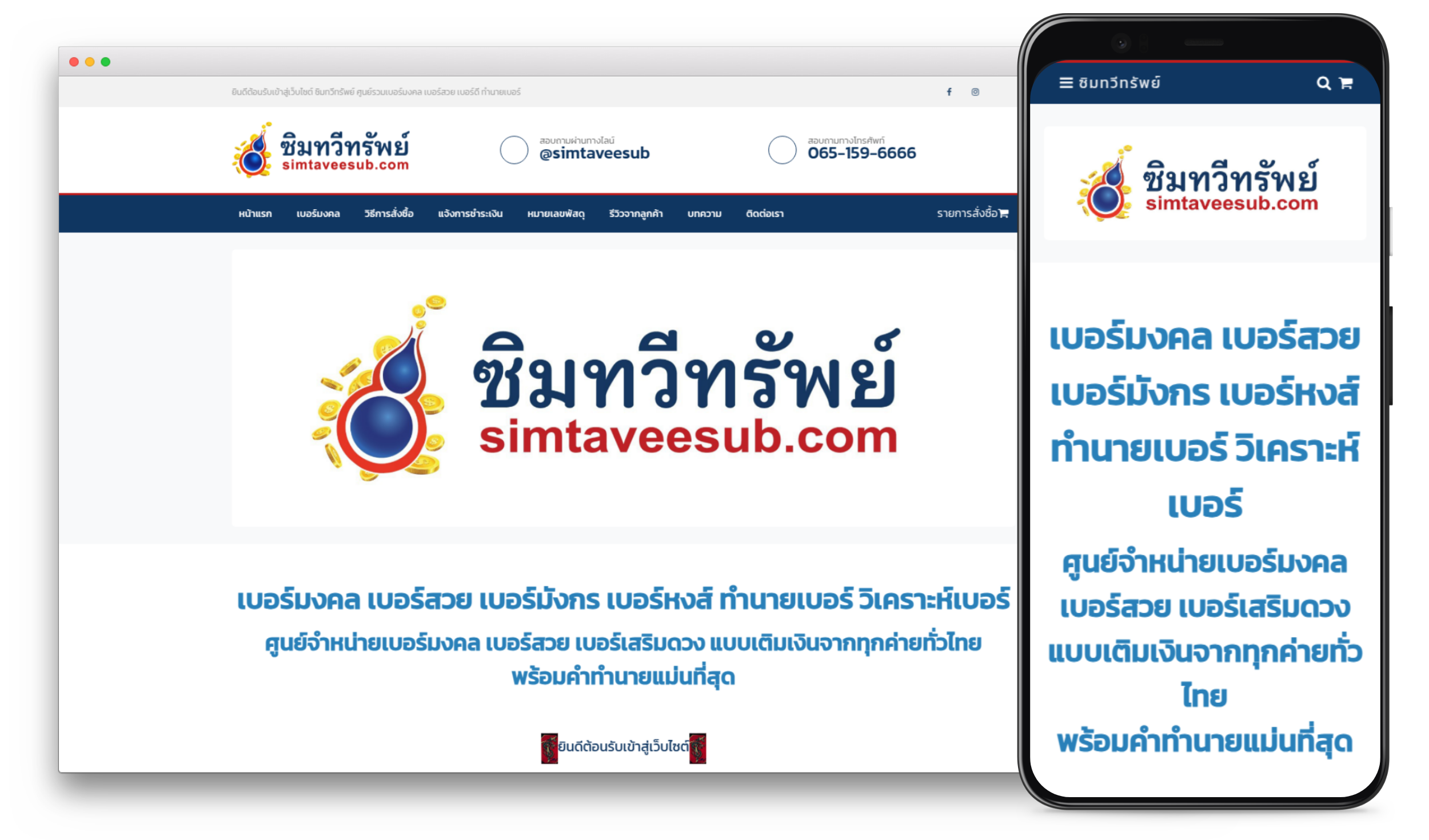 จัดทำเว็บไซต์ขายเบอร์มงคล Simtaveesub.com