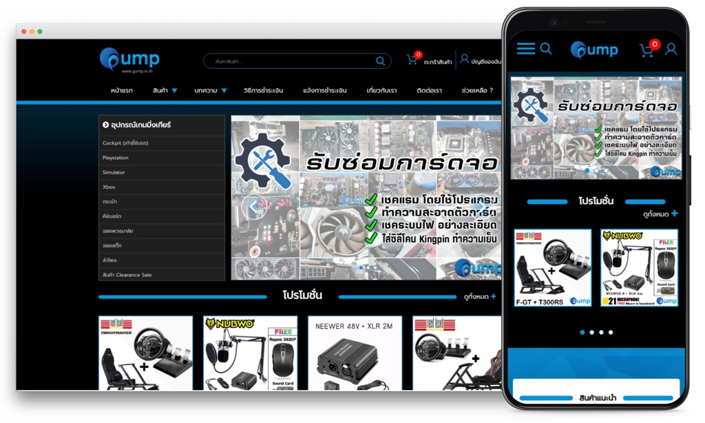 จัดทำเว็บไซต์ขายอุปกรณ์คอมพิวเตอร์ Gump.in.th