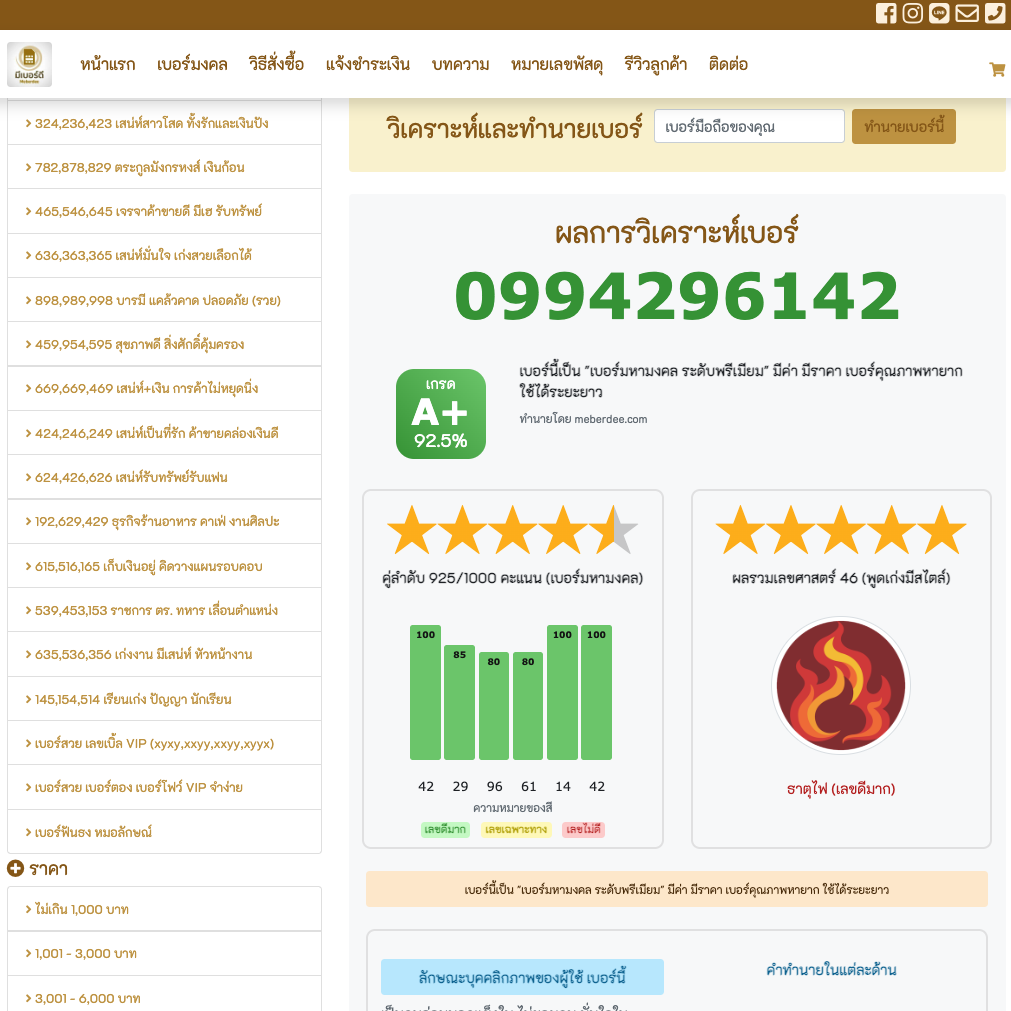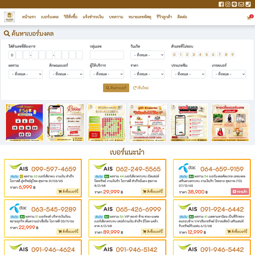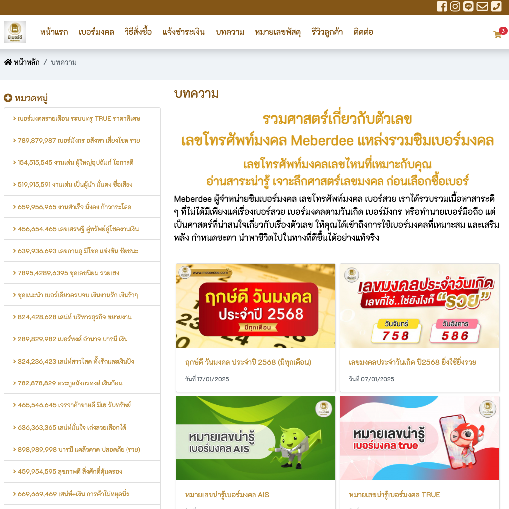 ออกแบบเว็บไซต์ขายเบอร์มงคล Meberdee.com