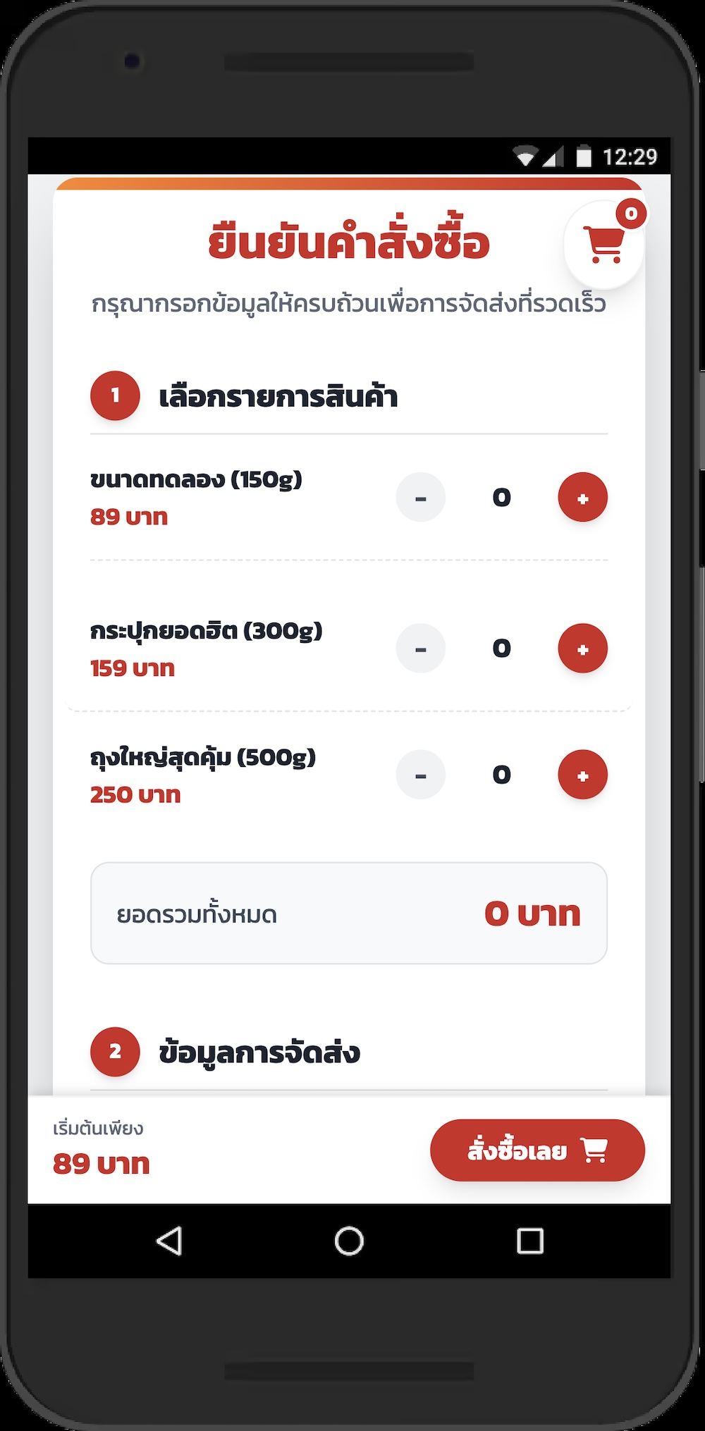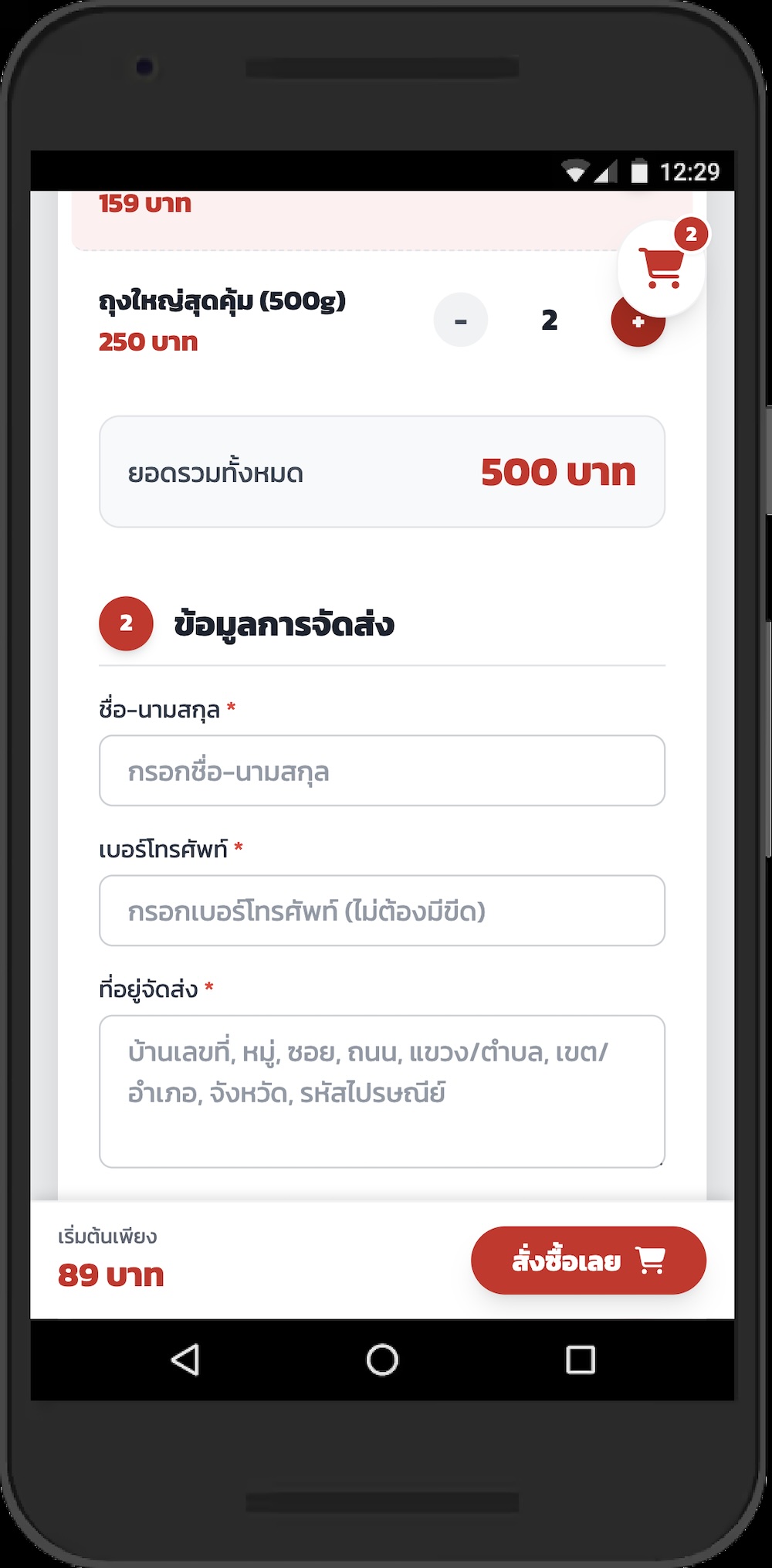 ระบบสั่งซื้อสินค้า, ฟอร์มกรอกที่อยู่, ระบบหลังบ้าน, Responsive, SEO