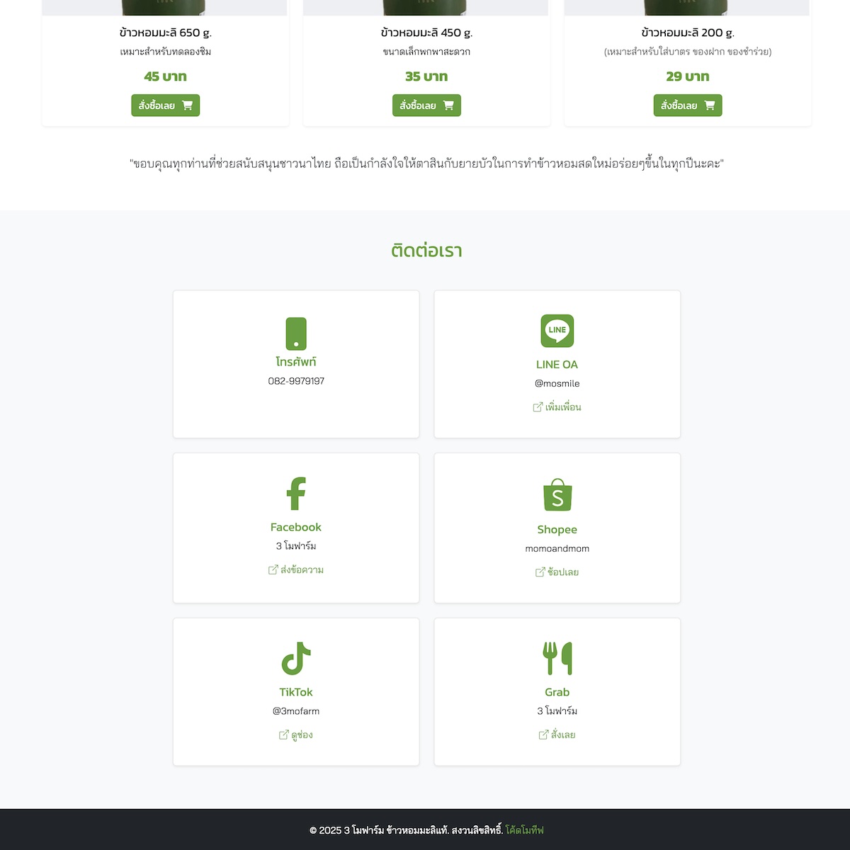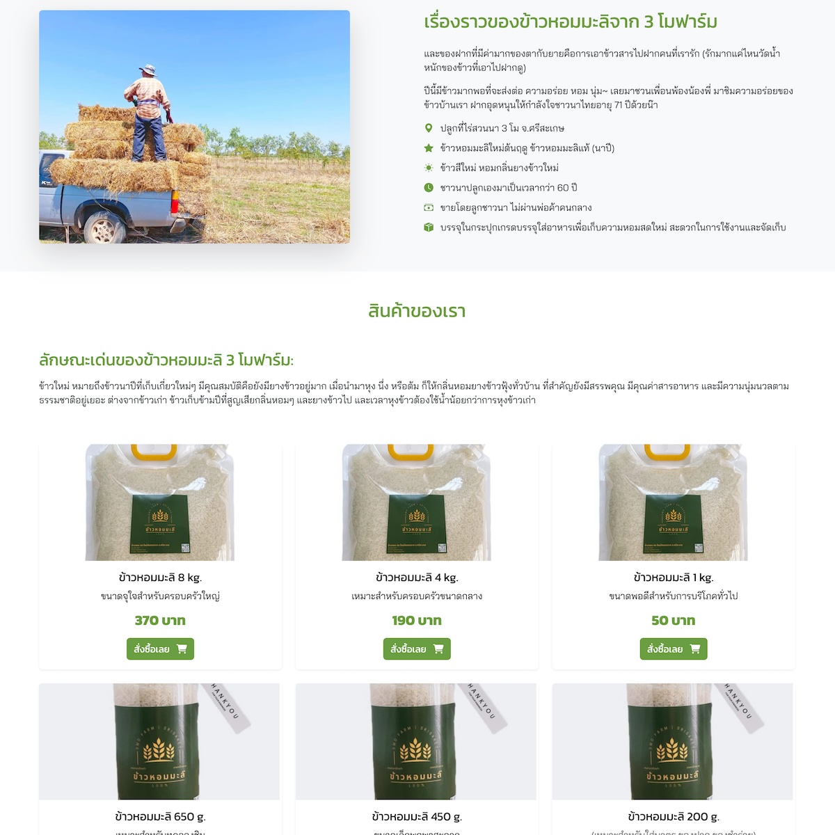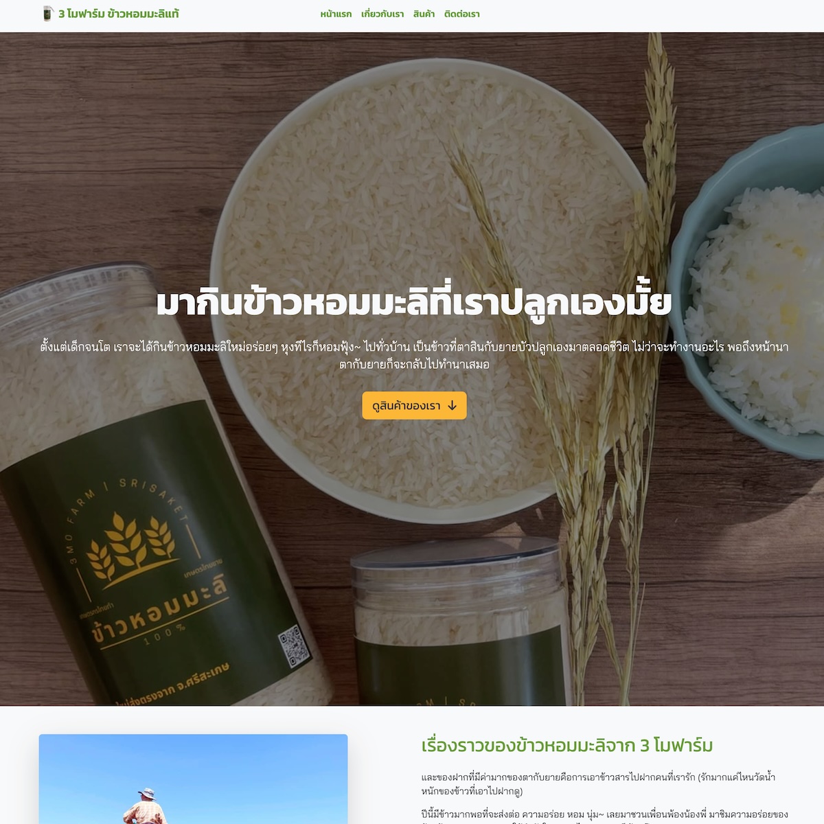 เว็บไซต์ Sale Page ข้าวหอมมะลิ 3 โมฟาร์ม